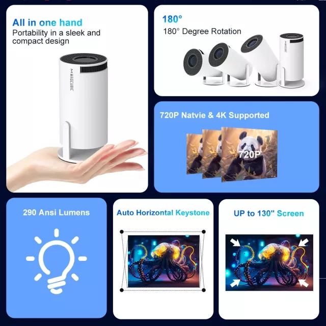 This projector isn’t just about visuals—it’s about freedom and versatility. Perfect for movie nights, gaming sessions, office presentations, or outdoor gatherings, it adapts to your lifestyle. The upgraded optical system boosts brightness by 50% and clarity by 225%, while AV1 video decoding offers up to 30% better data efficiency, letting you stream more content with less lag. Its compact size and rotatable body make it ideal for travel or small spaces.