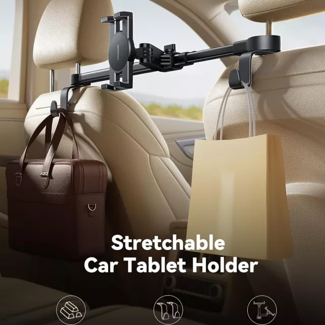 Car Headrest Tablet Mount with 360° Rotation & Extension Arm – Fits 4.7”-13” Devices