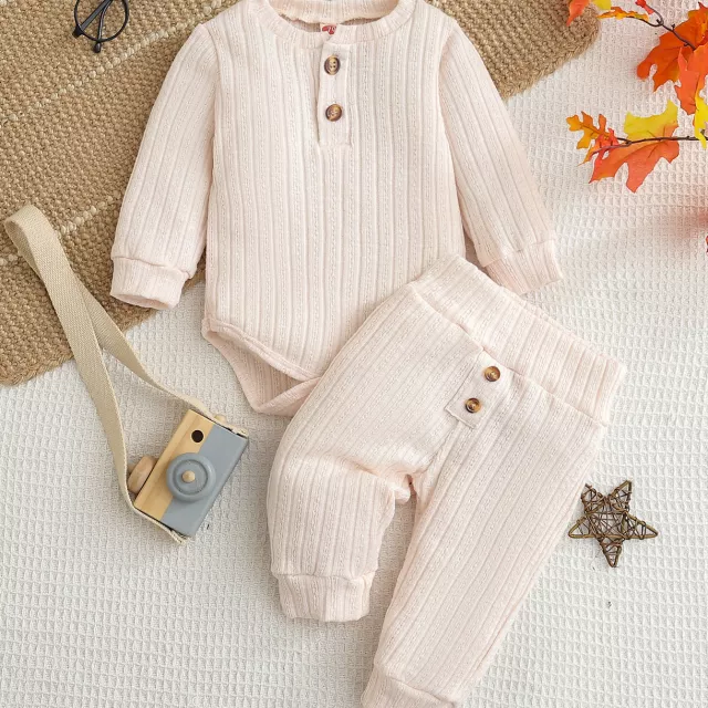 This romper set features a simple yet elegant casual design that pairs beautifully with any accessories. Whether it’s a day at home, a stroll in the park, or a cozy family gathering, your baby will look adorable and feel at ease. The true-to-size fit ensures a snug, natural feel as your baby grows, making it a practical and stylish choice all season long.