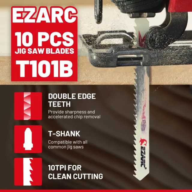 Each blade features 10 TPI (teeth per inch) for ultra-smooth cutting through wood, delivering clean edges with minimal splintering. Their unique tooth geometry reduces vibration and ensures effortless control even on curved or intricate cuts. The T-shank design provides universal compatibility with most major jigsaw brands—so you can focus on your craft, not your tools.