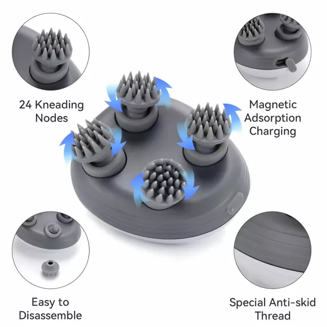 • Deep 3D Kneading Massage: Equipped with 4 massage heads and 24 individual nodes, it delivers a gentle yet powerful rotation that perfectly fits your scalp and body contours.