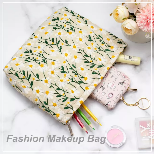 Bring beauty, order, and a little daisy charm into your travels today — add this must-have cosmetic bag to your collection now!