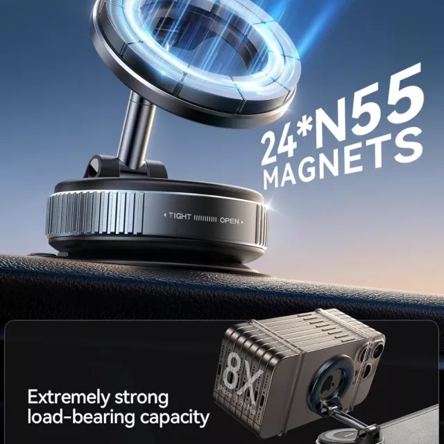 Meet the ultimate phone mount engineered for modern drivers. This magnetic car phone holder combines advanced vacuum suction technology with military-grade magnets for a grip that never quits. Designed for convenience, safety, and style, it keeps your phone rock-solid and perfectly positioned—no matter how rough the road gets.