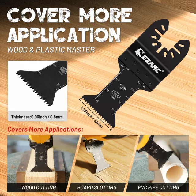 This high-performance blade features a 1-1/4 inch width and a 1-5/8 inch maximum plunge depth, allowing deep and accurate cuts even in tight spots. Made from premium Cr-V alloy steel, it offers excellent hardness, wear resistance, and toughness — lasting up to 1.5 times longer than standard HCS blades. Its quick-release design lets you install or remove the blade in seconds, so you can stay focused on the task instead of fumbling with tools.
