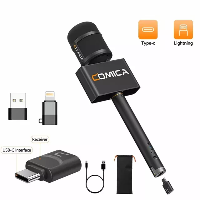 Whether you’re conducting street interviews, podcasting, reporting, live streaming, or filming social media content, this microphone is built to perform. Its portable, lightweight design (just 3.8 oz) makes it easy to handle for extended sessions, while the included accessories—USB-C and Lightning adapters, mic sponge, and carrying case—ensure compatibility and convenience wherever you go.