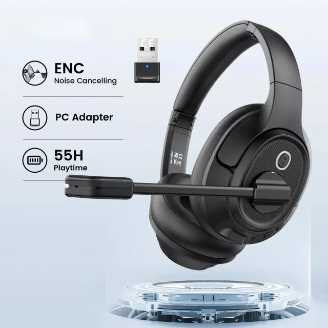 This wireless headset uses the latest Bluetooth 5.0 technology to ensure fast, stable connections up to 33 feet away. Its ENC noise-cancelling microphone reduces up to 98% of background noise, letting your voice come through clearly—even in bustling environments. With dual device connectivity, you can seamlessly switch between your computer and smartphone for calls, meetings, or music. The 40mm drivers deliver rich stereo sound, while the integrated USB dongle makes it easy to connect even to non-Bluetooth computers—no setup required.