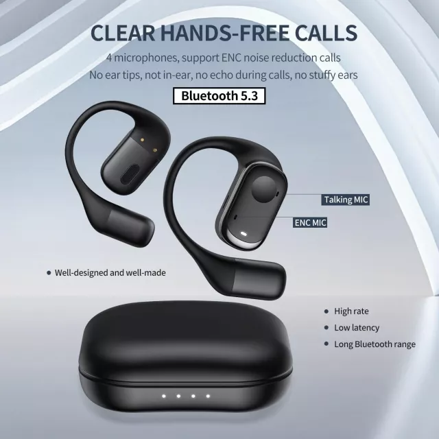 Don’t settle for ordinary sound. Upgrade to our Wireless Open-Ear Headphones and enjoy the perfect balance of style, comfort, and quality. Order your pair today and take your audio experience to the next level!