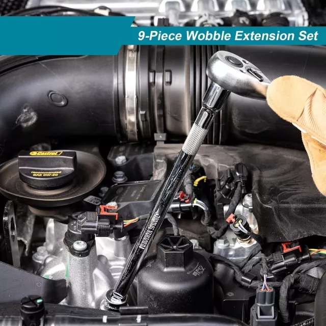 The innovative wobble head design allows two modes of operation: use it partially inserted for a 15° wobble angle that’s perfect for confined areas, or fully inserted for a standard straight extension. It’s ideal for working in deep or narrow spaces such as engine compartments or behind panels—making it a must-have in every garage or auto shop.